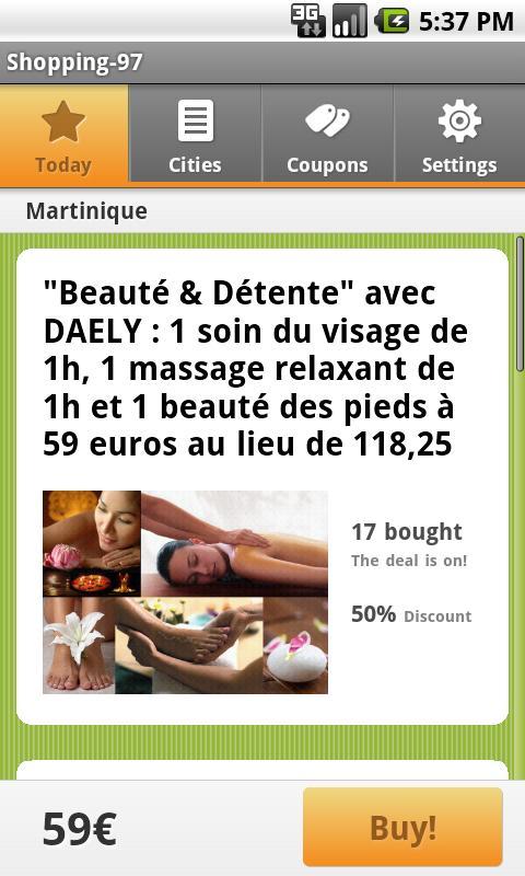 Belanja - 97 menawarkan penawaran makanan, olahraga, dan relaksasi dari vendor lokal di wilayah Antilles -Guyane. Tim Shopping-97 melakukan melalui penelitian di wilayah Hindia Barat dan Antilles-Guuyane, memetik tangan hanya penawaran kualitas. Berbicara tentang penawaran mereka, harga yang tidak ada duanya bukanlah segalanya, kualitas produk dan layanan harus mencapai harapan juga.